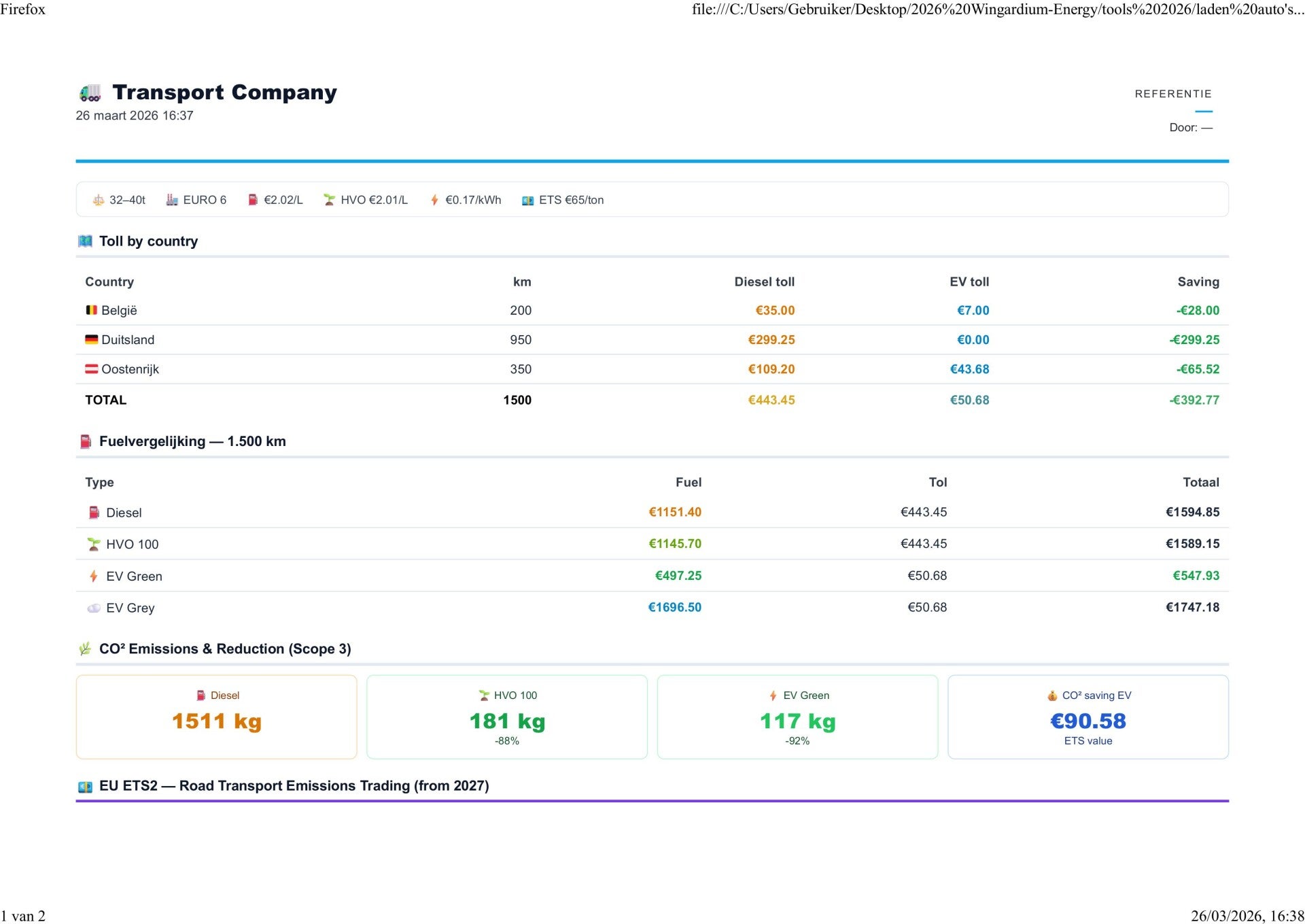 Cost impact analysis of road charging and ETS 2 on your current fleet.